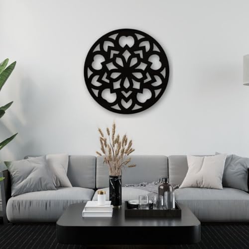 Generic - لوحة فنية جدارية بتصميم ماندالا من ام دي اف بلون اسود، متوفرة في 3 مقاسات (30-60 سم)، ديكور منزلي عصري (مقاس M)