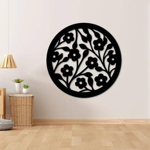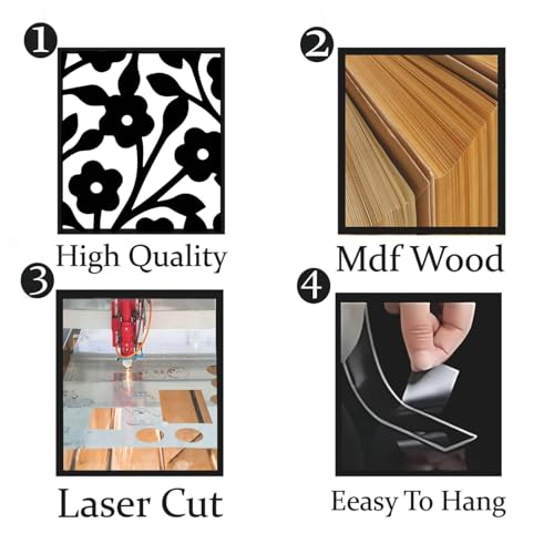 - التصميم: لوحة فنية جدارية أنيقة بنمط زهور دائرية مصنوعة من خشب ليفي متوسط الكثافة، تتميز بفتحات زهور معقدة بلمسة نهائية سوداء عصرية