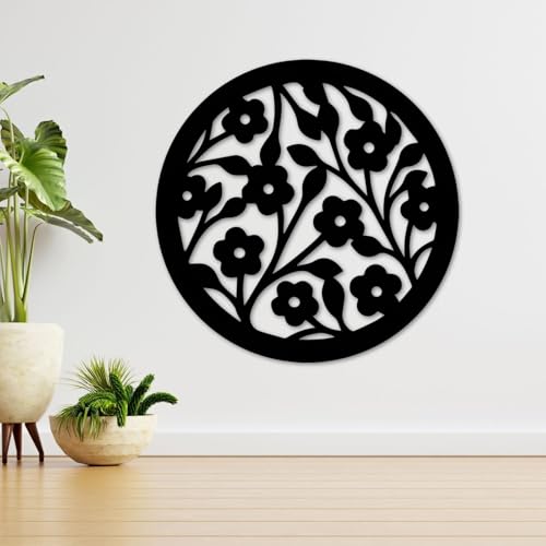 Generic - لوحة فنية جدارية بتصميم دائرة زهور من ام دي اف، لوحة زخرفية دائرية، متوفرة بـ 3 مقاسات (40-80 سم)، ديكور منزلي عصري (مقاس M)
