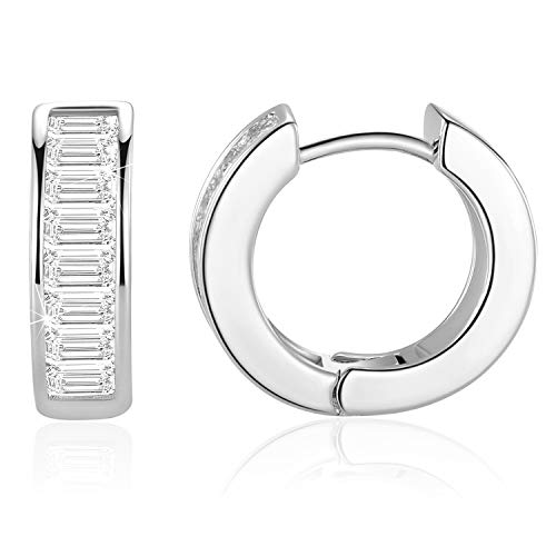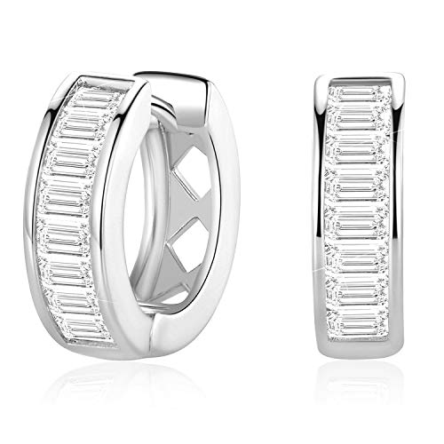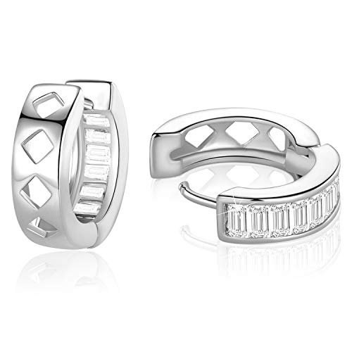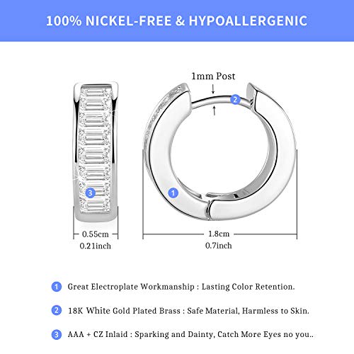 MDFUN - حلقان صغيرة بريمة ذهب اصفر وابيض عيار 18 قيراط مزينة بفصوص زركونيا للنساء من ام دي فن نحاس مكعب