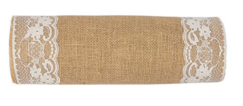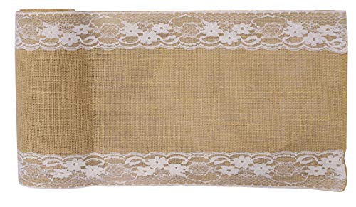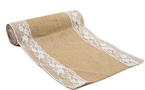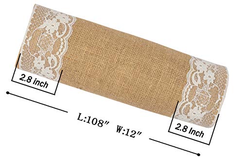 MDS-MEGADECORSUPPLY - ام دي اس 5 قطع من مفرش طاولة الزفاف 12 × 108 انش من الخيش والدانتيل بتصميم ريفي من الجوت الطبيعي الريفي العتيق لتزيين ولائم الزفاف
