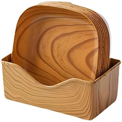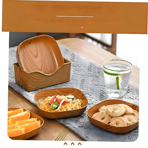 - كل طبق مربع مصنوع من البلاستيك المتين الذي يحاكي حبيبات الخشب الطبيعي، مما يجعله مثاليًا للمقبلات أو الغمس أو اللمسات الزخرفية.