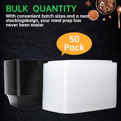 Femora - علب تحضير وتخزين الطعام مع أغطية، صندوق بينتو للاستعمال مرة واحدة، لانش بوكس بلاستيك للمطبخ وللخروج، آمنة للاستخدام في الميكروويف وغسالة الأطباق والفريزر، 50 قطعة (750 مل)