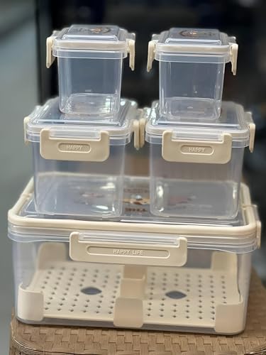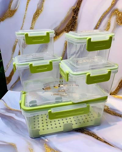 Generic - أوعية تحضير الوجبات وطقم صناديق ثلاجة بلاستيكية مقاومة للتسرب مصممة للتخزين الصحي وسهلة التنظيف وقفل آمن مع أغطية محكمة الإغلاق، 5 قطع