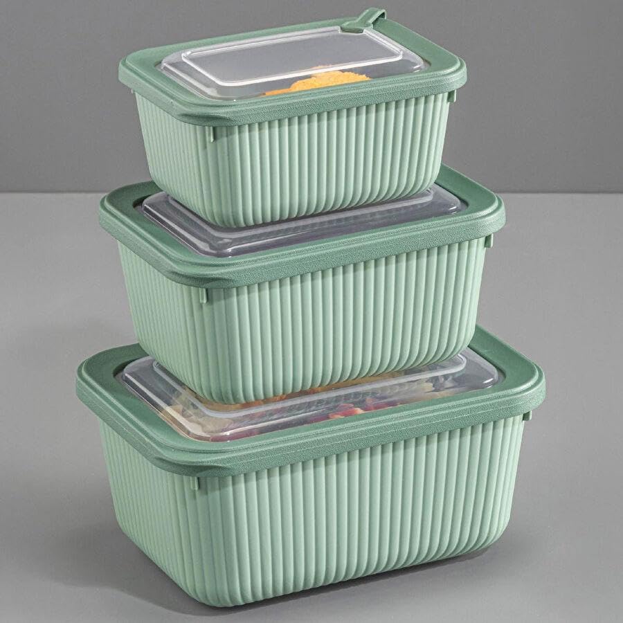 - مجموعة من 3 حاويات طعام بلاستيكية متينة بأحجام مختلفة للتخزين المرن في المنزل أو أثناء التنقل، مما يضمن الراحة والانتعاش في كل مرة.
