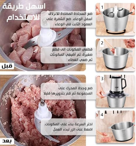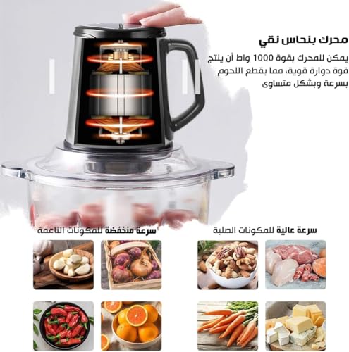 Generic - مفرمة لحم قطاعة قوية 11000 واط خلاط قوي مع 4 سكاكين سرعتين سهلة التنظيف سعة كبيرة 5 لتر 2023-7 فضي