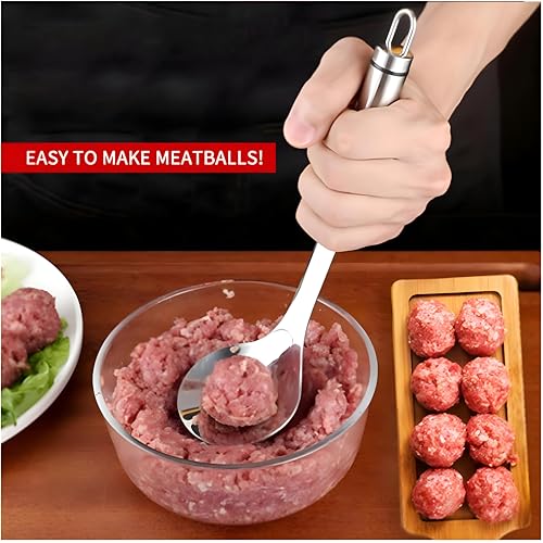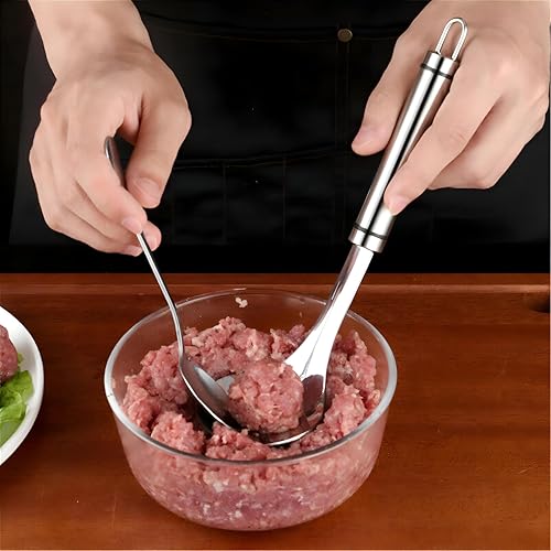 Generic - ملعقة كرات اللحم - مكبس يدوي من الستانلس ستيل لتشكيل كرات اللحم، سمك مثالي وخضروات، تصميم من قطعة واحدة