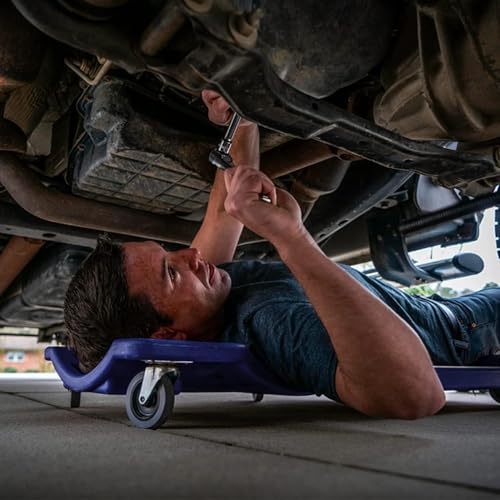 Generic - زحاف بلاستيكي ميكانيكي للسيارات طول 1.0 متر مع مسند رأس مبطن متدحرج للجراج 6 عجلات أزرق