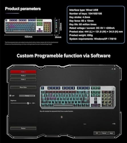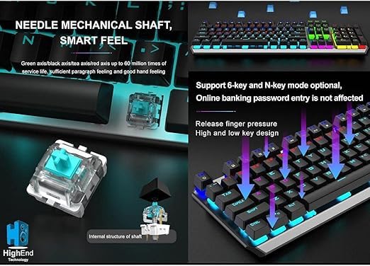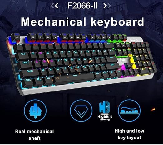 Generic - كيبورد العاب ميكانيكي F2066-II - مفاتيح زرقاء سريعة الاستجابة - مفاتيح عربية وانجليزية - كيبورد سلكية متينة للالعاب والاستخدام اليومي