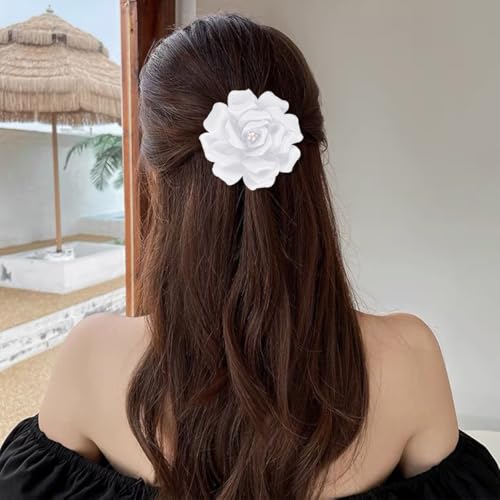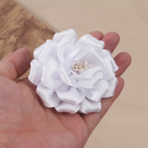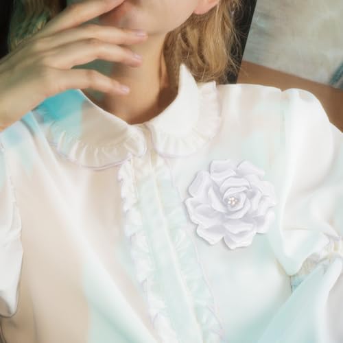 Mecool - مي كول مشبك شعر على شكل وردة لحفلات الزفاف، مشبك شعر كورساج، مشبك راس على شكل زهرة، مشبك شعر على شكل زهرة، اكسسوارات للشعر للنساء والفتيات، لون ابيض