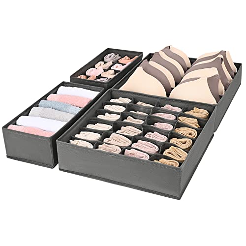 MecTo - منظم ادراج الملابس الداخلية من ميكتو 4 قطع القماش غير المنسوج مقسم قابل للطي لتنظيم خزانة لتخزين الشرابات والملابس وربطات العنق 6+7+8+24 خلية رمادي