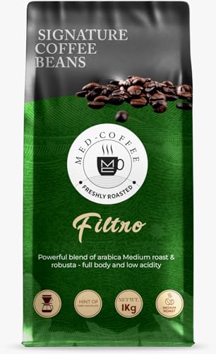 MED-COFFEE - قهوة فيلترو متوسطة التحميص متوازنة بشكل جيد من ارابيكا وروبوستا ميد كوفي مطحونة 1000 غرام كيس