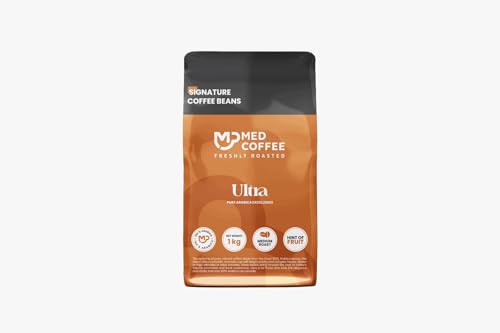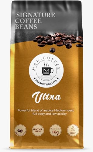 MED-COFFEE - حبوب كاملة ألترا من ميد كوفي، مذاق ناعم وحلو. ألترا 100% عربي 1000 جرام، الحبة الكاملة، وعاء