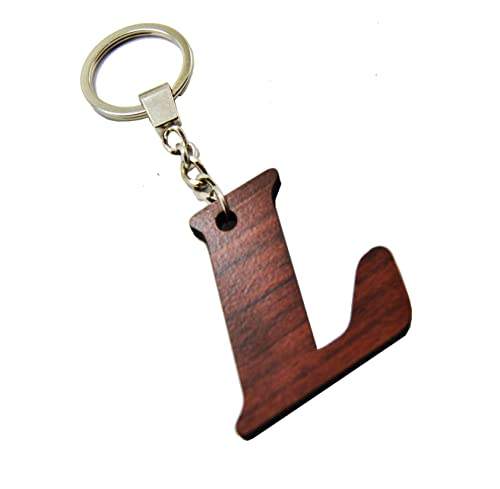 Generic - - ميدالية - مفاتيح للسيارة والمنزل والمكتب وغير ذلك بتصميم خشبي مقطوع بالليزر مع دلاية على شكل (حرفL) - من رنا ستور، بني
