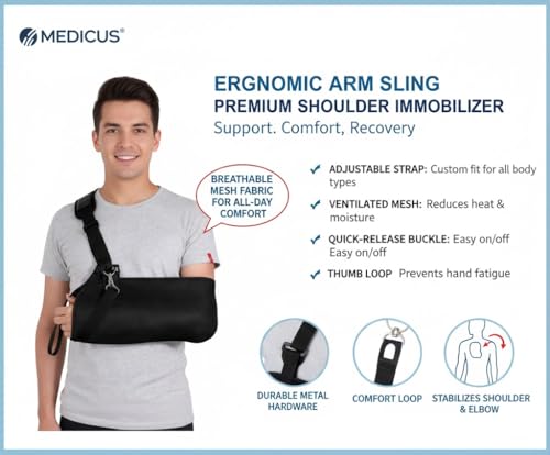 Generic - حمالة ذراع طبية، تصميم ثابت مزدوج، دعامة ذراع مدمجة ، حمالة الذراع اليمنى واليسرى للكتف والكوع واصابات المعصم، قابلة للتعديل للرجال والنساء