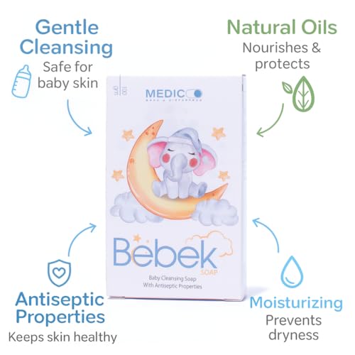 MEDICO - صابون أطفال بيبيك طبيعي ولطيف بالصبار وفيتامين اي والزيوت الطبيعية، صابون بتركيبة مرطبة للأطفال حديثي الولادة والأطفال من ميديكو، 100 جم