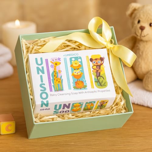 MEDICO - صابون يونيسون مضاد للبكتيريا مع صبار الألوفيرا وفيتاميني سي واي والزيوت الطبيعية، منظف عميق ومرطب وواقي للبشرة الحساسة من ميديكو، 100 جم