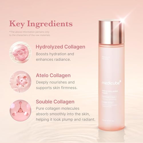 - احصلي على بشرة لامعة ومنعشة مع تونر الكولاجين الثلاثي هذا من العلامة التجارية تيك توك فيرال ميديكوب. مصمم لتوفير ترطيب مكثف ومعالجة البهتان وزيادة مرونة بشرتك، فهو مركب من مركب الكولاجين الثلاثي المميز من ميديكيوب، وهو مزيج قوي من الكولاجين المتحلل بالماء واتيلو والكولاجين القابل للذوبان الذي يزيد من مرونة البشرة وينعم الخطوط الدقيقة والتجاعيد ويقوي البشرة للحصول على بشرة ممتلئة وشبابية.