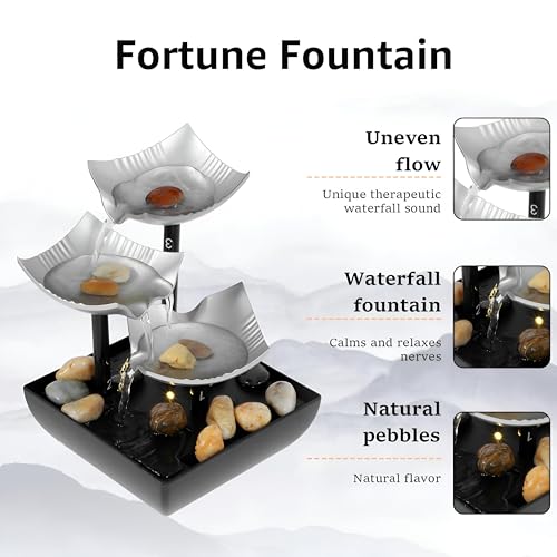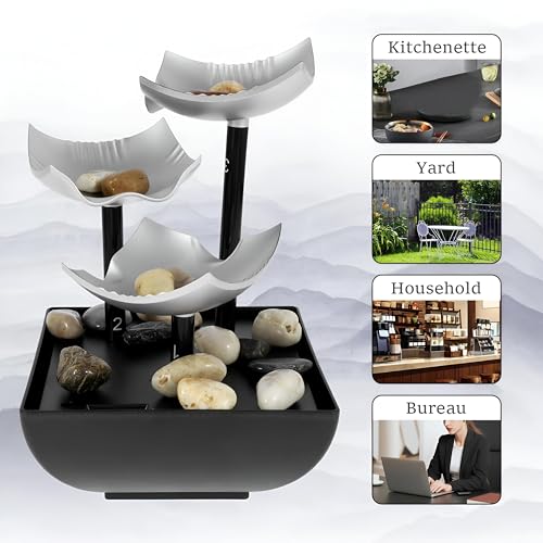 - تتميز نافورة المياه الداخلية هذه بثلاث طبقات، مما يخلق تأثير مائي متتالي سلس يعزز أجواء أي غرفة. تجمع بين كل من الجمال والأصوات المهدئة للطبيعة، مما يوفر بيئة هادئة للاسترخاء.