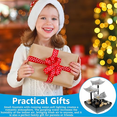 Generic - أكسسوار تأمل - نافورة شلال مهدئة مع إضاءة ليد وحصى زخرفية، مناسبة لتعزيز الاسترخاء في مساحات العمل أو غرف النوم أو مناطق المعيشة، تعمل بمنفذ USB