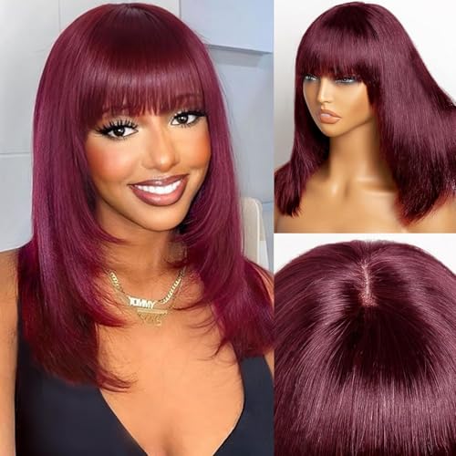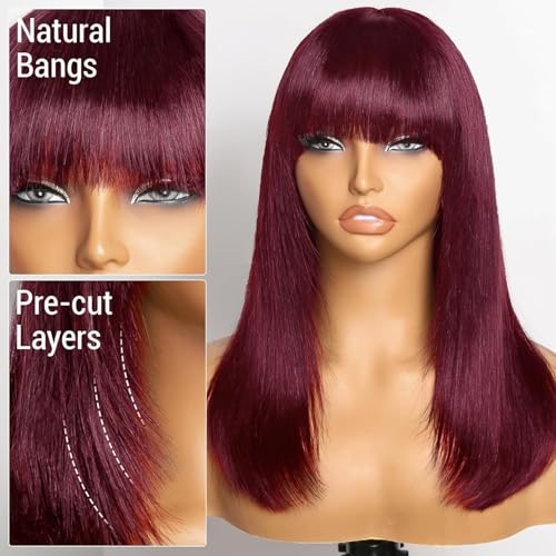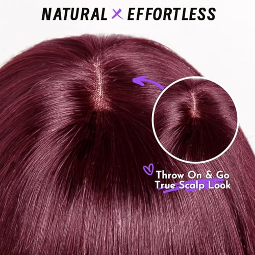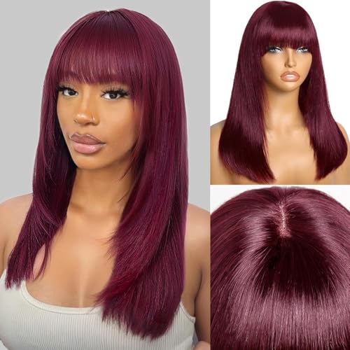 Generic - شعر مستعار صناعي بقصة مستقيمة من الأعلى إلى مموج من الأسفل بكثافة 180% للنساء بطول 18 انش - 40 سم إلى 45 سم - لون اسود وأحمر نبيذي JW54-99