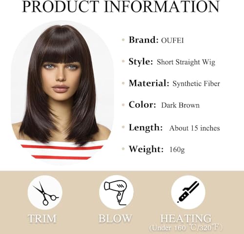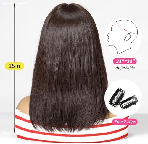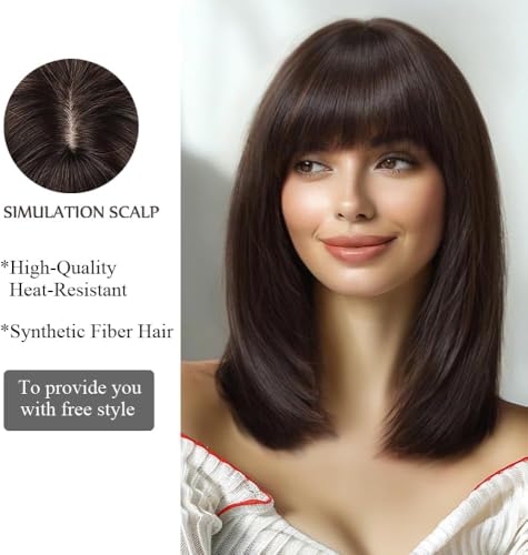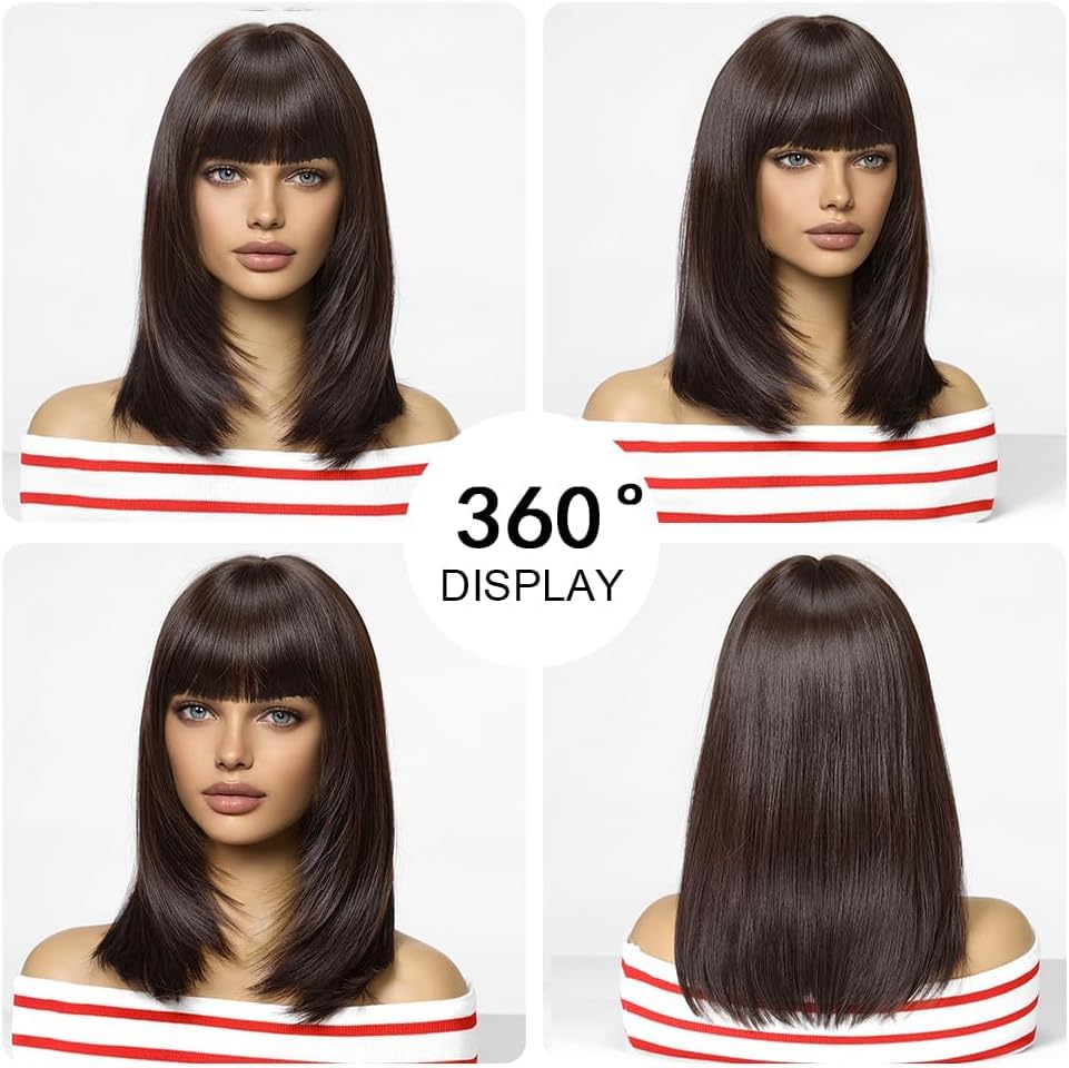Generic - باروكة شعر مموج ناعم بهيكل متوسط للنساء، شعر مستعار صناعي بطول الكتف، كثافة 180%، باروكة اوشن ويف، لون بني غامق، 46 سم، من 40 سم إلى 45 سم، JW35-4