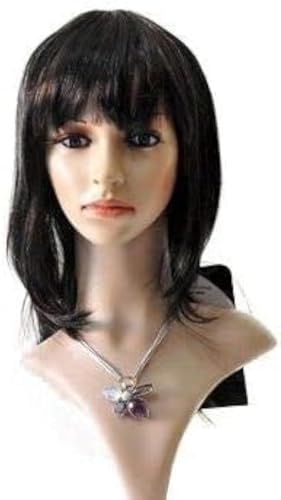 Generic - باروكة شعر مستعار متوسط الطول بلون اسود مفرود مناسب للاستخدام اليومي شعر حراري قابل للغسيل والمكواه