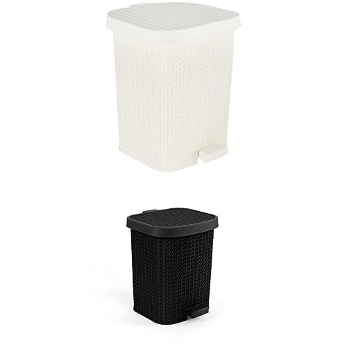 El Helal and Golden star - سلة مهملات متوسطة الحجم بلون ابيض + سلة مهملات متوسطة الحجم بتصميم نخيل بلون اسود، من الهلال اند جولدن ستار