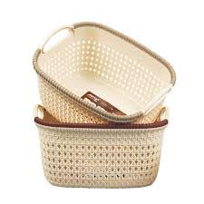 Generic - سلة بلاستيكية متوسطة الحجم مستطيلة الشكل بتصميم من الخيزران ومقابض حمل - متعددة الألوان