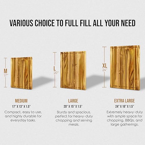 - [قابل للعكس، أخدود عصير، مقبض مدمج]: يتميز لوح التقطيع الخشبي بسطح واسع وناعم قابل للعكس مصمم لقطع مختلف العناصر بشكل منفصل. تتضمن مقابض مدمجة للحمل والتعامل دون عناء. مجهزة بأخدود عميق على طول الحواف لجمع العصائر أو السوائل والاحتفاظ بها من اللحوم والفواكه والخضروات.