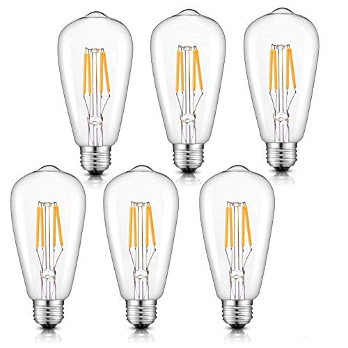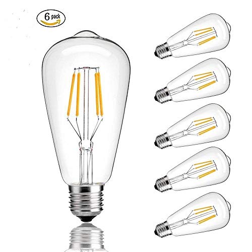 J&T - مصباح فينتاج اديسون LED 4 وات من ميدوسا ST64 قديم الطراز لديكور المنزل E27 3000K أبيض دافئ عبوة 6 قطع جاي اند تي 7.0 واط