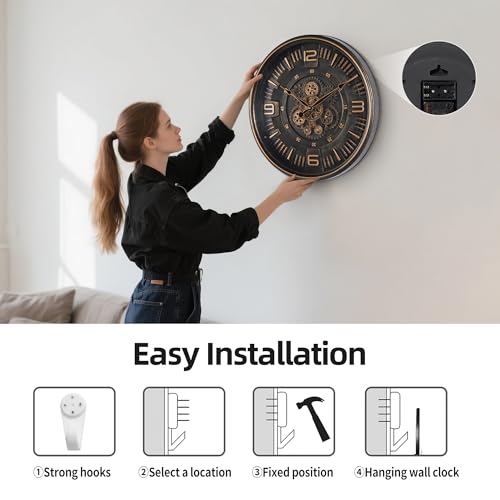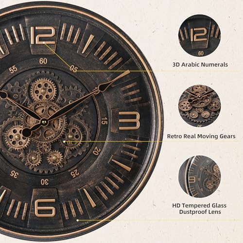 - 【تروس متحركة مذهلة للحصول على مظهر صناعي كلاسيكي】 تتميز ساعة الحائط الكبيرة هذه بتروس دوارة مرئية تخلق شعورًا آسرًا. مزيج مثالي من الديكور الصناعي والسحر الميكانيكي