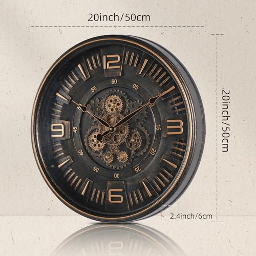 Mee 2ou - ساعة حائط كبيرة فينتاج من مي تو او مع تروس متحركة، ساعة حائط صناعية رترو ستيمبنك مزخرفة مقاس 20 انش مع تروس متحركة لغرفة المعيشة والمنزل والمكتب والمدفأة