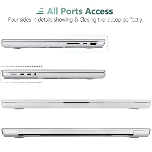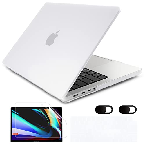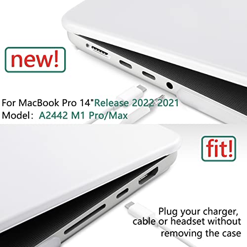 MEEgoodo - ميجودو حافظة ماك بوك برو 14 انش اصدار 2021 A2442 M1 برو/ماكس مع خاصية التعرف باللمس، حافظة صلبة مع غطاء كيبورد وواقي شاشة متوافقة مع ماك بوك برو 14 انش ريتينا، ابيض مات، بلاستيك بي في سي