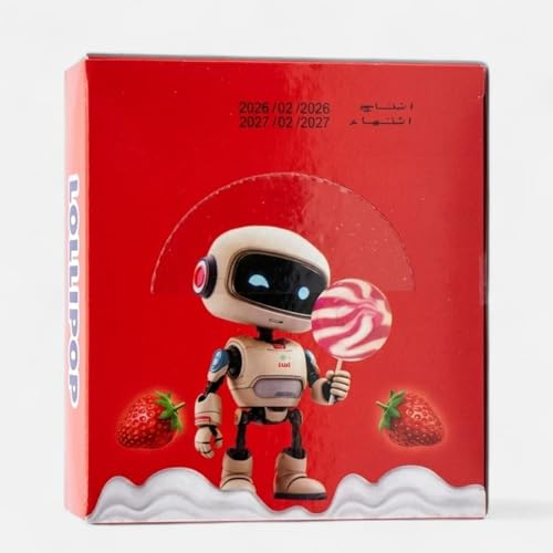 - محتوى العلبة: تحتوي كل علبة على 12 قطعة من حلوى اللوليبوب بنكهة الفراولة الشهية
