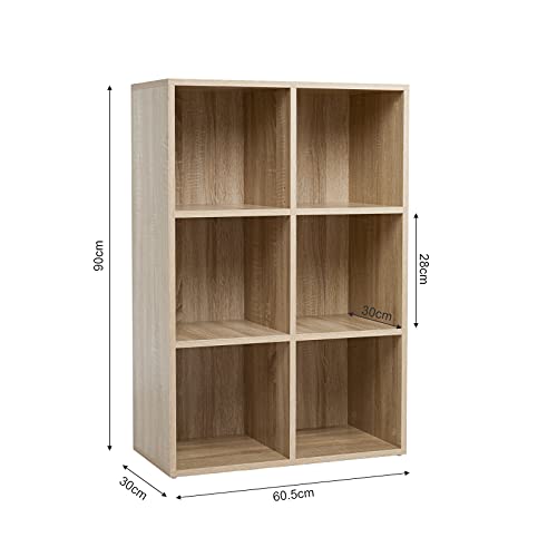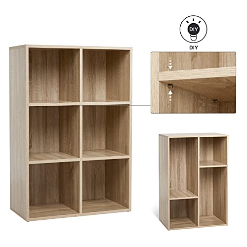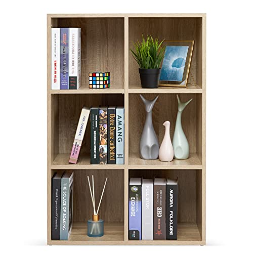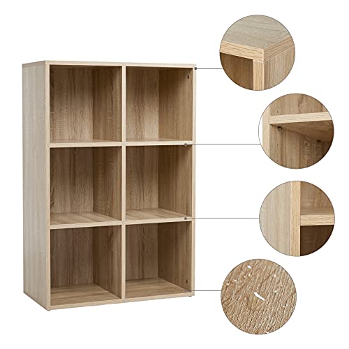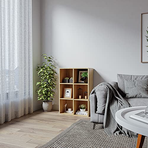 Meerveil - ميرفيل رف كتب مفتوح مصمم من 6 مكعبات من خشب البلوط، رف تخزين خشبي للكتب، خزانة تخزين أقراص DVD، رف كتب من 3 طبقات، مناسب للمكتب وغرفة الدراسة وغرفة المعيشة، نمط نورديك عصري