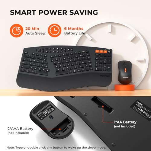 - 【تصميم مقسم مريح】تستخدم لوحة المفاتيح اللاسلكية المريحة من ميشن تصميم إطار مفتاح مقسم منحني يتبع وضعية التمدد الطبيعية للمعصمين والذراعين، وتجنب التمدد الزائد أو الالتواء. يقلل تصميم الكيبورد المائل من الضغط على عضلات المعصم والساعد، مما يسمح لك بالكتابة بإجهاد أقل، حتى بعد ساعات من الكتابة المستمرة. تتطلب لوحة المفاتيح بطاريتين ايه ايه ايه (غير متضمنة) ويتطلب الماوس بطارية ايه ايه واحدة (غير متضمنة).