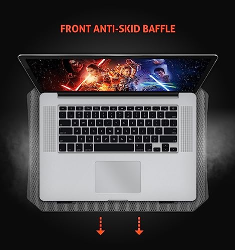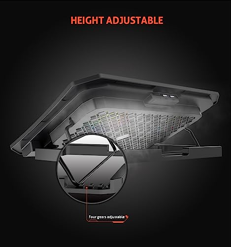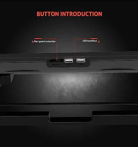 - 5 مراوح تبريد سريعة: 5 مراوح تبديد الحرارة سريعًا، ضوضاء منخفضة، يمكن أن تقلل من حرارة اللاب توب بفعالية، حتى يستخدم الكمبيوتر بسلاسة أكبر، انسَ تأخير اللعبة بسبب الحرارة الناتجة عن التأخير، حتى تكون عملية اللعبة أكثر سلاسة، يمكن ضبط سرعة المروحة مع التحكم في سرعة المروحة.