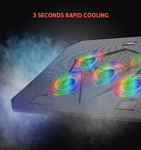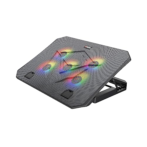 MEETION - قاعدة تبريد لاب توب الألعاب مقاس 9-15.6 بوصة، منافذ USB مزدوجة، إضاءة LED RGB، خفيفة الوزن، 5 مراوح تبريد سريع مع شبكة من خليط الألومنيوم وحامل قابل للتعديل من ميشن، موديل CP3030