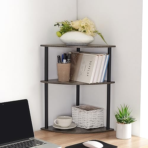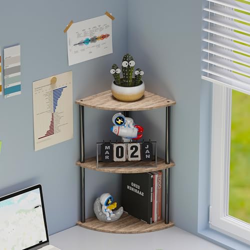 MEEYOUER - حامل زاوية من 3 طبقات، رف عرض زاوية من الخشب والمعدن الريفي، منظم تخزين زاوية مثلث صغير مناسب للمطبخ والحمام وغرفة المعيشة والمكتب من ميوير