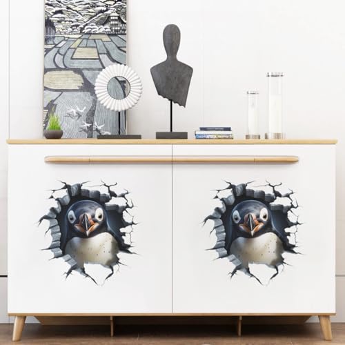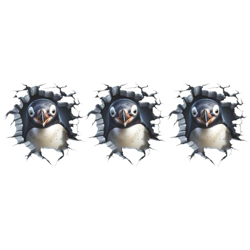 MEFOSS - ملصقات جدارية ثلاثية الأبعاد قابلة للإزالة من ميفوس على شكل بطريق مكسور، 3 قطع، لتزيين جدران غرف الأطفال وغرف اللعب والحمامات.