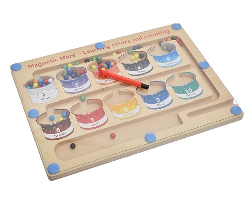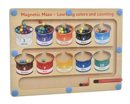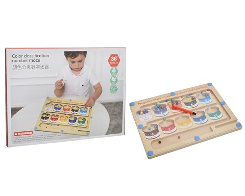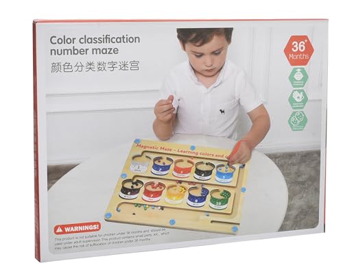 Megahertz - لعبة تعليمية خشب مغناطيسية للأطفال بعمر 3 سنوات فما فوق، لوحة مغناطيسية تتضمن متاهة لتصنيف الأرقام متعددة الألوان