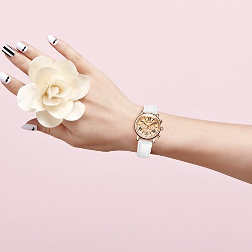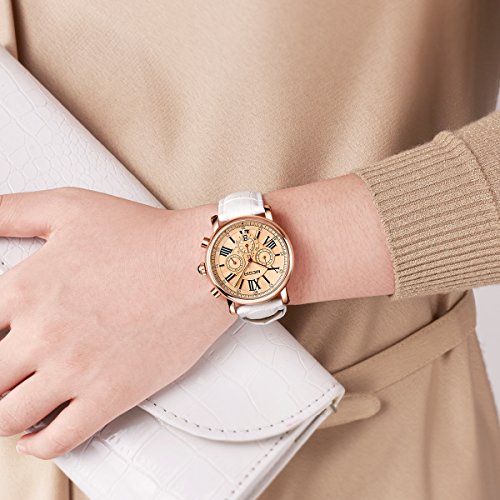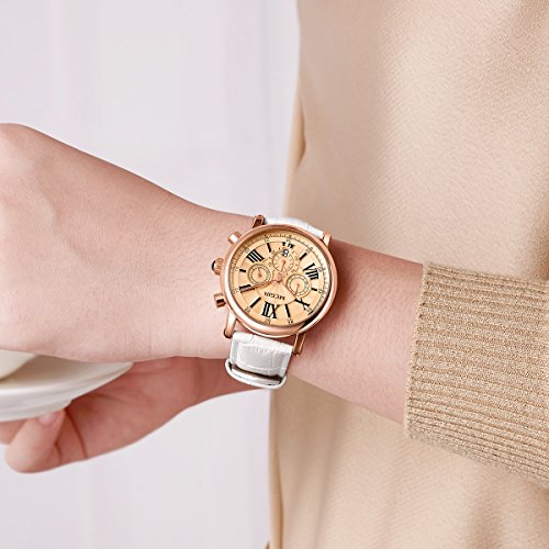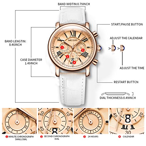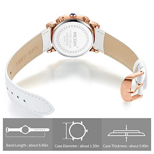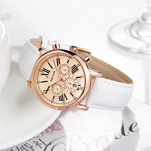 Megir - ساعة اليجانس بتصميم انيق موديل ML2058LREWE-0N0، انالوج، بمينا ذهبي، بسوار أبيض