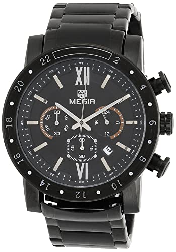 Megir - ساعة انالوج بعقارب من الستانلس ستيل للرجال ميجر MS3008G - BK-1 بمينا أسود