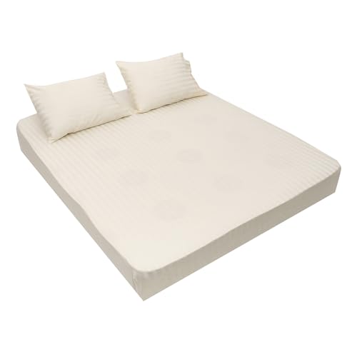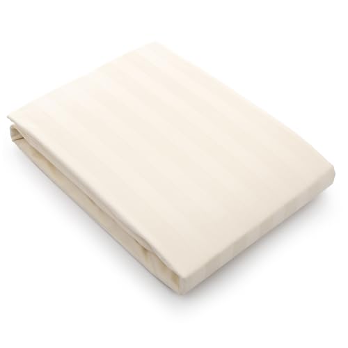 Mehalla - طقم ملايات بحواف مطاطية مخططة من الساتان 2 سم المحلة مقاس كينج لون اوف وايت قطن أبيض مُخطط عدد الخيوط: 400 . ميهاللا