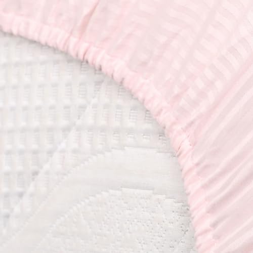 Mehalla - طقم ملاءات بأستك مخططة من الساتان مقاس كوين 4 ملم المحلة لون وردي قطن عدد الخيوط: 400 ميهاللا