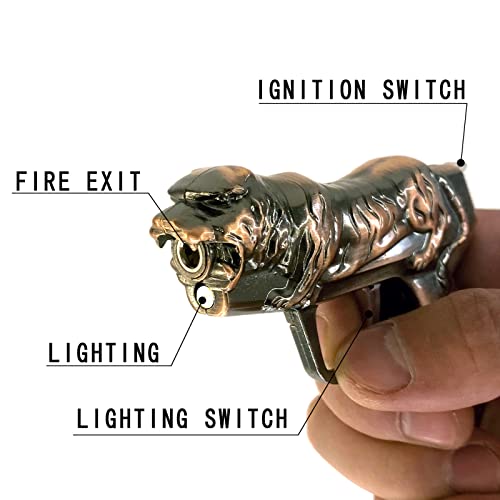 Meiegens - ولاعة سخان فريدة ومبتكرة بتصميم شكل نمر ومقاومة للرياح تتميز بلهب نفاث وتعمل بغاز البوتان قابلة لإعادة الملء وقابلة لتعديل حجم اللهب وبذلك فهي ولاعة تصلح لتكون هدية رائعة من ميجنز، لون نحاس أحمر