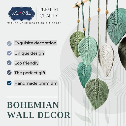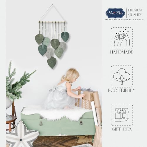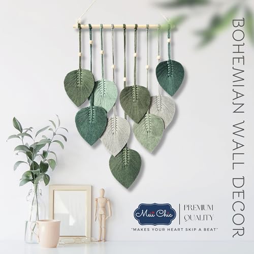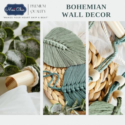 MEIICHIC - زينة حائط خضراء مريمية من ميشيك بوهيمية مصنوعة يدويا خيوط منسوجة لتزيين الحائط مكرمية للتعليق على L