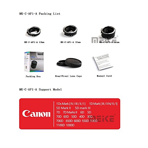 Meike - انبوب تمديد ماكرو معدني بتركيز تلقائي لكاميرا كانون دي اس ال ار مقاس 13 و21 و31 ملم 1D 6D 7D 50D 70D 550D 700D 5D مارك II 5D مارك III وغيرهم من مايك، موديل MK-C-AF1-A