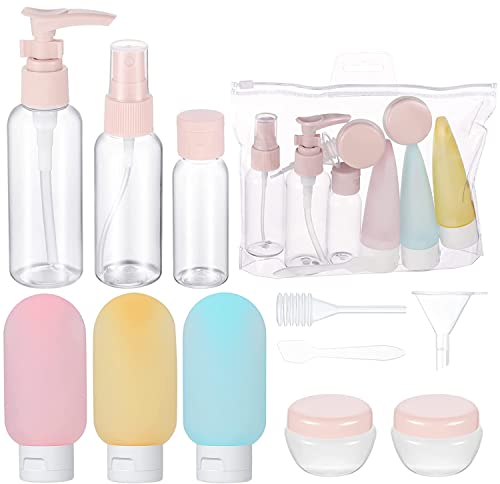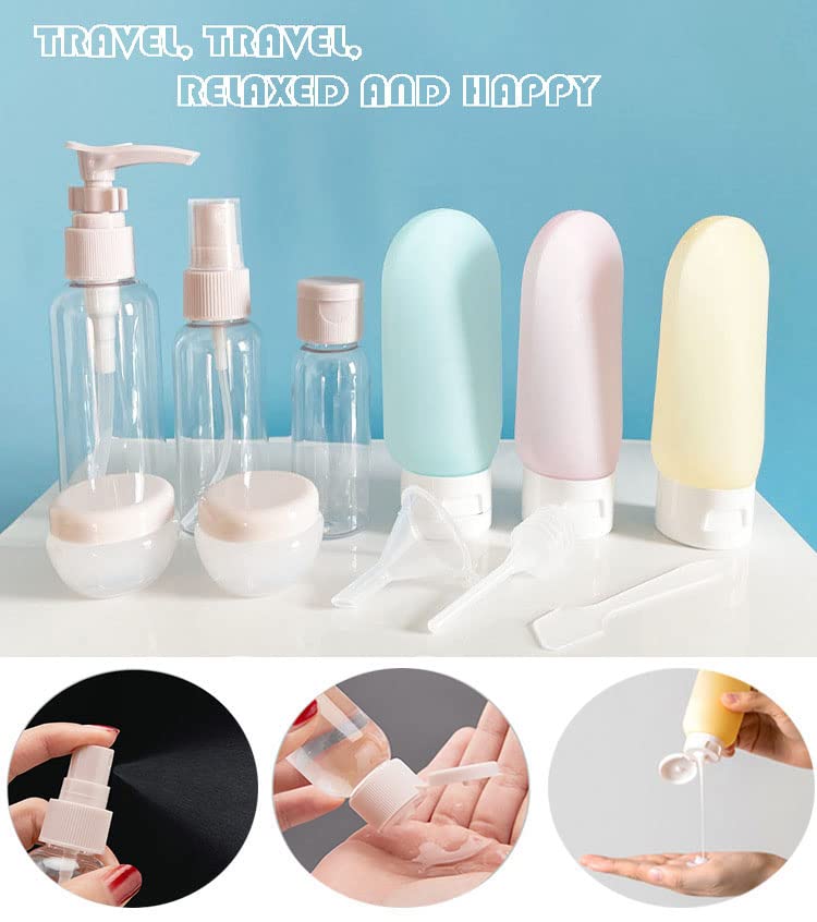 MEISO - مجموعة زجاجات سفر لمستحضرات التجميل مانعة للتسرب من ميزو، علب سفر محمولة قابلة لاعادة الملء وقابلة للضغط، زجاجات محمولة لغسل الجسم، علب مستلزمات الزينة، زجاجات أدوات الزينة للسفر، 11 قطعة